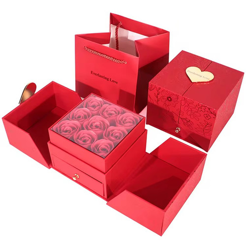 مروارید عشق+باکس گل ۱۲ عددی پک هدیه-باکس کادویی